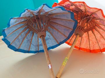Ombrellini carta e legno dipinto a mano originale Thailandia dimensioni h. 28 cm diametro aperto 25 cm circa Disponibilità per vendita singola 10 euro