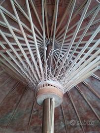 Ombrellino cinese in carta di riso e legno bambù dipinto a mano.