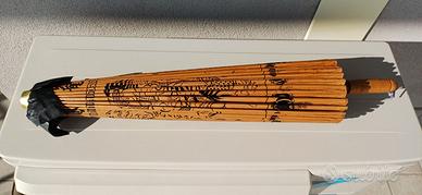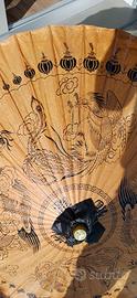 Ombrello thailandese in carta oleata e bambù fatto e dipinto a mano diam.1mt. H.69cm.
