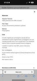 Vendo per inutilizzo ombrellone ikea usato 1 volta.Tutto come nuovo! Ancora in garanzia! Mai bagnato dalla pioggia! Compreso di borse per stabilizzare la pedana a riempimento di sabbia e sacca anti pioggia.