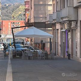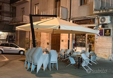 Ombrellone 5 metri per 4 con telone impermeabile completamente rifatto nuovo da un mese costato mille euro più luci Led dentro a parte, tutto compreso nel prezzo. Ombrellone per bar, pasticcerie,gelaterie,ristoranti, pizzerie ecc ecc