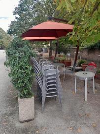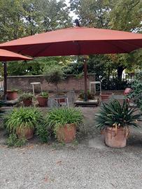 OMBRELLONI PER ESTERNO 3m.x3m. in tela pali in legno e con piantana in cemento e cornice in ferro regolabile in altezza