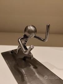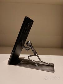 Vendo particolare porta cellulare raffigurante omino stilizzato che lo sostiene, realizzato completamente a mano con materiale di scarto riciclato, saldato, smerigliato e rifinito con vernice protettiva.