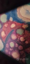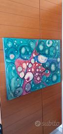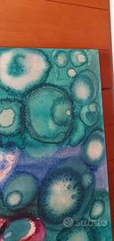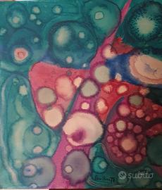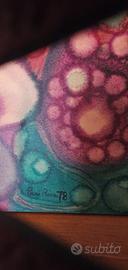 Il dipinto presentato è un’opera astratta, realizzata con tecniche fluide (olio e acrilico molto diluito), caratterizzata da un forte effetto “cellulare” o organico. La composizione è caratterizzata da una superficie dominata da forme tondeggianti e concentriche che evocano processi vitali, crescita e trasformazione. La materia pittorica, resa attraverso velature e dissolvenze, contribuisce a creare profondità e coinvolge lo sguardo in un’esperienza immersiva. I colori che prevalgono sono i verdi e i turchesi, con contrasti vivaci di rosa, magenta e tocchi di bianco/avorio. L'effetto sfumato e granuloso è ottenuto con una tecnica a diffusione (aerografo e pittura versata su tela). Lo stile è astratto biomorfico, con richiami visivi al mondo naturale (microrganismi, tessuti, coralli). Realizzata nel 1978, si colloca nella fase iniziale della ricerca artistica di Piero Roca, orientata verso una sperimentazione astratta e sensoriale. Il lavoro si distingue per la sua capacità di coniugare energia e armonia, è una rappresentazione astratta della vita in formazione. La firma è in basso, si legge chiaramente “Piero Roca ’78”, che indica autore e data (1978). Stato di conservazione eccellente come si evince dalle foto. L'opera viene offerta senza cornice, ma il bordo è colorato in continuità con la superfice dipinta. Dimensioni: Larghezza cm 90 - altezza cm 65 PIETRO ROCA, (alias Piero Roca), è nato a Foggia dove vive e lavora. Ha scoperto la dimensione dell’arte nell’adolescenza e, affascinato dalla pittura di Klee e Kandisky, ha prodotto moltissime opere a tempera su carta e olio su tela. Si è laureato nel 1978 in Scenografia presso l’Accademia di Belle Arti di Roma. Ha proseguito per diversi anni la ricerca sull’arte astratta e gestuale realizzando molte opere con l’acrilico su tela anche di grandi dimensioni. Fino ad oggi ha organizzato diverse personali in Francia, Italia e Spagna. Le sue opere sono presenti in molte collezioni pubbliche.