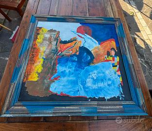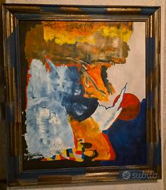 Esposto ad Agadir nel 93 in occasione del conferimento del gran premio del Marocco. info: misure: 70x60 cm valutazione artistica ai tempi: 3.500.000 lire Dipinto originale dallo stile astratto e contemporaneo, caratterizzato da una forte espressività cromatica e da un equilibrio dinamico tra forme e colori. Le tonalità calde dell’arancio e del rosso si fondono con contrasti freddi di blu e bianco, creando una composizione intensa e suggestiva. La presenza di elementi geometrici e pennellate materiche dona profondità e movimento al dipinto. Perfetto per arredare ambienti moderni, soggiorni, studi o spazi creativi, aggiungendo un tocco artistico e ricercato. Tecnica: pittura su tela Stile: astratto moderno Opera: pezzo unico Cornice inclusa (come da foto) Un quadro ideale per chi cerca un elemento distintivo e originale, capace di catturare l’attenzione e stimolare emozioni. prezzo trattabile certificato di garanzia annesso