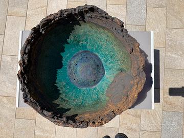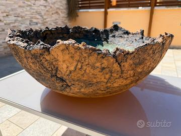Opera in ceramica di Joan Llacer, un famoso ceramista spagnolo, un'artista che ha ricevuto innumerevoli premi internazionali ed ha esposto nelle più prestigiose gallerie del mondo. L'opera ha le seguente dimensioni: diametro 60 cm, altezza 24 cm, peso 17 kg.