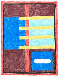 Pannello decorativo in stampa digitale MEG Abet Laminati - Mosca Partners srl. Disegnato da Nathalie Du Pasquier. Pezzo unico esposto al fuorisalone di Milano 2024. Composto da due pannelli affiancati.