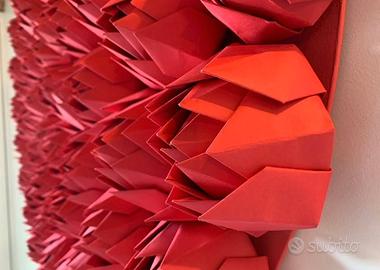 Opera d'arte realizzata con la tecnica dell'origami, raffigurante fiori di loto rossi disposti a formare un cerchio. - Pezzo unico. - Colore: rosso. - Tecnica: origami. - Diametro: 1m circa Caratteristiche Colore Rosso Materiale Carta su mdf Misure Altezza 100 cm Larghezza 100 cm Profondità 10 cm