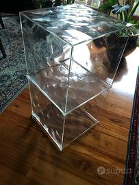 Optic Kartell è un cubo contenitore in PMMA (polimetilmetacrilato) la superficie è decorata da piramidi a base quadrata, leggermente a rilievo che, con la superfi cie specchiante o trasparente, creano un effetto ottico di grande impatto e offre infinite possibilità di combinazioni. Più Optic si possono accostare, impilare e comporre linearmente, a seconda della quantità e della disposizione si prestano a risolvere le più svariate funzioni regalando all’ambiente un grande tocco di charme.