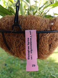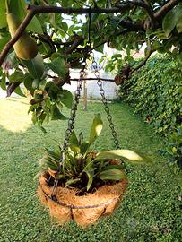 vendo pianta di Orchidea Stanothea Tigrina varietà Nigriviolacea X Self con supporto in metallo e cesto in fibra di cocco.