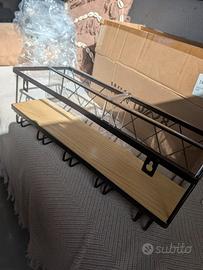 carinissimo organizer per la cucina, adatto per poggiare calici e vino ma anche altro, grazie a due scompartimenti in plastica utili per spezie, aromi, e qualsiasi altra cosa da cucina.