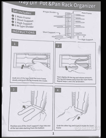 Organizer cucina in metallo verniciato nero, organizzatore padelle, pentole, piatti, da inserire anche negli sportelli della cucina