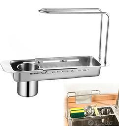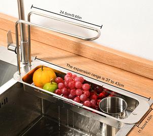 Organizer per lavello, in acciaio inox, telescopico / allungabile, organizzazione della spugna con strofinaccio, portasciugamani per cucina, o porta pezza / spazzola, strofinacci