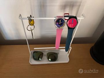 Organizer Yamazaki in metallo bianco con base a vassoio. Perfetto come svuotatasche da ingresso o organizer da bagno e camera: puoi appoggiare piccoli oggetti nel vassoio e appendere accessori alla barra (chiavi, collane, bracciali, elastici, ecc). Design minimale e super ordinato. Condizioni molto buone.