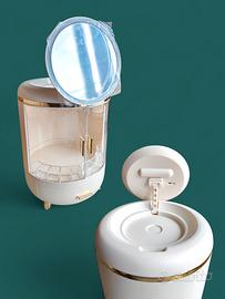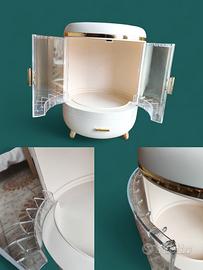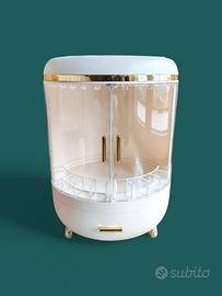 Organizzatore beauty da tavolo dal design a capsula circolare, ideale per tenere in ordine cosmetici, profumi e prodotti skincare. Struttura anti polvere, perfetta per proteggere i prodotti mantenendoli comunque visibili. Dotato di specchio integrato regolabile nella parte superiore, sollevabile e orientabile a diverse altezze. In foto appare opaco perché è ancora presente la pellicola protettiva. Include un cassetto inferiore e una rastrelliera interna trasparente, molto utili per organizzare rossetti, smalti e piccoli accessori in verticale senza farli cadere. ✨ Condizioni: mai utilizzato, venduto per inutilizzo. 🔹 Dettagli tecnici: • Tipologia: Organizzatore beauty / Porta trucchi • Design: Capsule circolare • Colore: Trasparente con dettagli neutri • Funzione: Anti polvere • Specchio: Integrato e regolabile • Scomparti: Cassetto + divisori interni • Utilizzo: Cosmetici, profumi, skincare • Condizioni: Nuovo, mai usato 📏 Misure: • 30,5 × 30,5 × 39,5 cm Per qualsiasi informazione o altre foto, scrivimi pure! Risposta rapida 📩 Spedizione veloce e accurata garantita. --- Parole chiave: organizzatore trucchi, porta makeup con specchio, beauty organizer capsule, porta cosmetici anti polvere, organizer skincare, contenitore trucchi Keywords: makeup organizer, cosmetic organizer, beauty storage, dustproof makeup organizer, vanity organizer, skincare storage