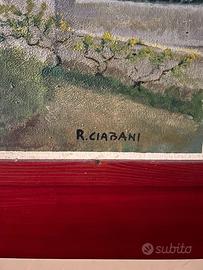 Splendido dipinto originale del Maestro Sergio Ciabani, noto artista toscano celebre per la sua capacità di catturare l'anima del paesaggio e della vita rurale con uno stile inconfondibile. L'opera rappresenta un paesaggio campestre, caratterizzato da pennellate materiche e una gestione della luce calda e vibrante. Caratteristiche dell'Opera: Autore: Sergio Ciabani. Tecnica: Olio su tela con tecnica a spatola/pennello materico. Soggetto: Paesaggio toscano/figurativo rurale (tipico della poetica dell'autore). Cornice: Inclusa nel prezzo, in legno pregiato con finitura colore rosso. Stato di conservazione: Eccellente. La tela è tesa perfettamente e i colori sono vividi, privi di segni del tempo o ingiallimenti. Dettagli per il Collezionista: Un investimento sicuro per chi cerca un'opera di un artista che ha fatto la storia delle gallerie toscane. Prezzo: € 1.500,00 Note: Si predilige il ritiro a mano. Eventuale spedizione a carico dell'acquirente.