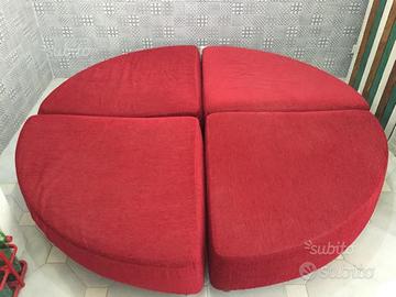 Quattro spicchi da usare singolarmente come poltrone , possono unirsi a due e diventare divani o a quattro e diventare un letto utilizzabile già così o come base per un materasso matrimoniale regolare. Fodera in ciniglia di cotone sfoderabile, che può essere anche tinta in colore diverso. Originale elemento di design e arredo. Misura 210cm. Comodo ritiro piano strada.