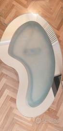 Vendo ad un prezzo eccezionale questo arredo da collezionismo di modernariato di grande interesse. Un futuristico tavolino “Space Age”, anni 1950 prodotto negli USA e fatto importare negli anni ’80. Il tavolo da salotto o da centro, integro nei suoi elementi, si illumina con luce blu. Molto particolare il piano di vetro con un elemento in vetro smerigliato.