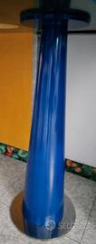 Design moderno e pezzo unico, realizzato tutto su misura da artigiani locali su disegno di un architetto. Piano con forma irregolare ma pratico per disporre comodamente sedie/poltroncine, realizzato con doppio vetro temperato trasparente . Fra i due piani c'è una lamiera di alluminio mandorlata trattata con finitura lucida e led perimetrale rimovibile.(a scelta). La base è composta da 4 colonne coniche blu elettrico realizzate con stampo in ghisa fissate su basi circolari di metallo cromato lucido. Un pezzo unico che si inserisce benissimo in arredamenti contemporanei sia di sale riunioni, uffici che sale da pranzo!
