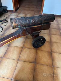 Cannone ornamentale su fusto legno e ruote metakko in ottone battuto vendo prezzo da convenire