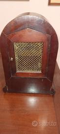 Orologio a pendolo inglese in legno fine 800 da tavolo integro e funzionante con chiave di carica misure h.32 cm l.20 cm p.11 cm base 24 cm