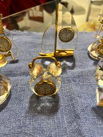 Vendo set di orologi da scrivania in cristallo con soggetti decorativi (chitarra, telefono, barca a vela, grammofono ecc.).