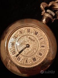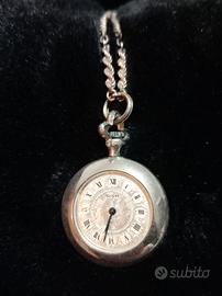 Orologio a cipolla marca Scott Vintage e massiccia e lunga catena argento 925 regolabile