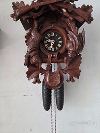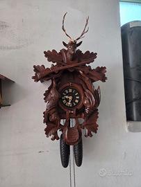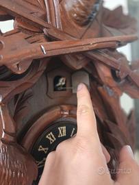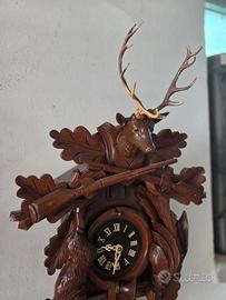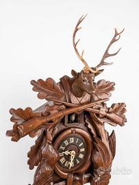 Splendido orologio a cucù meccanico della storica manifattura Huber Herr, realizzato nel 1987. Un pezzo da collezione autentico, interamente scolpito a mano in legno pregiato. Design Tradizionale: Tema "Caccia" con maestosa testa di cervo, fucili incrociati e selvaggina intagliata. Artigianato Tedesco: Prodotto originale della Foresta Nera (Germania). Dettagli: Meccanismo a pesi con le classiche pigne in ghisa. Il cucù canta allo scoccare dell’ora e della mezz’ora. Legno lucido ben conservato con venature e intagli integri. Un complemento d'arredo di grande fascino e un investimento per gli amanti dell'artigianato classico.