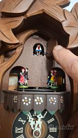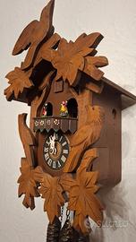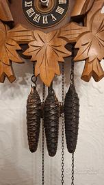 Orologio a cucù Foresta Nera, meccanico giornaliero a tre pesi con carillon e giostrina, revisionato e perfettamente funzionante.