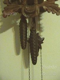 completo di pesi , pendolo e catenelle , meccanica in legno ed ottone ,