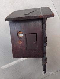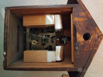 Vendo orologio a cucù marca Hubert Herr di Triberg, databile probabilmente agli anni '30. L'orologio è funzionante ma è da registrare. Qualche segno di anzianità nel frontone.