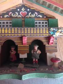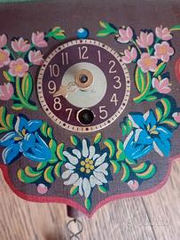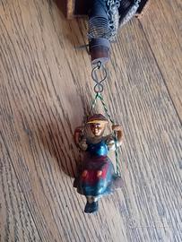 Orologio della foresta nera con igrometro e ballerini made in Germany. In buone condizioni estetiche, da revisionare, vendo come non funzionante Dimensioni : larghezza 13 cm, altezza 20 cm, profondità 6,5 cm. Consegna a Mestre o spedizione a vostro carico.