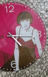 Orologio da Parete Moderno raffigurante Valentina ,personaggio disegnato da Guido Crepax, Circolare 30cm, Vetro e vernici multicolori. Segnalo una piccola deformazione della lancetta dei minuti. Funzionante . Utilizza pile 1,5 v ministilo.