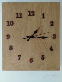 Orologio artigianale interamente realizzato a mano con legno da parche, meccanismo silenzioso
