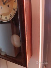 Piccolo orologio a parete in legno della Kienzle completo di chiavetta della ricarica, in ottimo stato , funzionante, misura in altezza conca 60 cm , lunghezza 30 cm e profondità 14 cm, gradevole suono alla mezz'ora e ad ogni ora, possibilità di escludere la suoneria. essendo fuori misura per Tutto Subito, la spedizione viene effettuata da me. al costo di 10 euro.