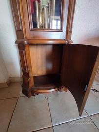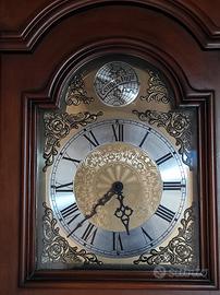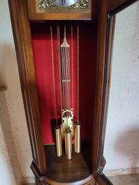 Orologio a pendolo a colonna perfettamente funzionante, mobile in legno altezza 2 metri circa con porta oggetti nella parte inferiore con antina.