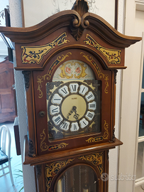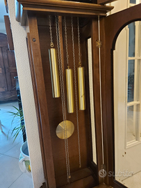 Orologio a pendolo Kienzle antico, modello gran salone a colonna con mobile in noce con intarsi in ottone e tartaruga. Altezza 201 cm - larghezza 43 cm. - profondità 27 cm. Movimento meccanico con suoneria Westminster quarti / mezze / ore.