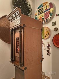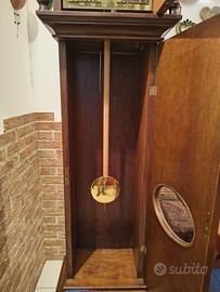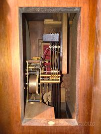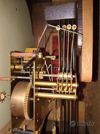 Vendo elegante orologio a pendolo a colonna (stile Tempus Fugit), pezzo d'arredamento classico e di grande fascino. - Struttura: Mobile in legno, con intagli decorativi sulla parte superiore e colonnine laterali. - Quadrante: In metallo dorato e argentato con numeri romani neri, arricchito da angolari decorativi in fusione di ottone. Riporta il classico fregio "Tempus Fugit" con mappamondo. - Meccanismo: Movimento meccanico tedesco originale (visibile in foto), robusto e di alta qualità. Dotato di suoneria su aste metalliche (Gong) che produce un suono profondo e melodico. (DISPONIBILE VIDEO CON MELODIA) - Accessori inclusi: Chiave di carica originale per il meccanismo e chiave per la chiusura dello sportello frontale. Pendolo a disco dorato regolabile. - Stato: L'orologio è esteticamente molto ben conservato. Il vetro frontale e l'oblò inferiore per la vista del pendolo sono integri. - Dimensioni indicative: [Altezza 190 x Larghezza 45 x Profondità 30 cm] Solo ritiro a mano a causa della delicatezza dell'oggetto. Zona Calolziocorte (LC)