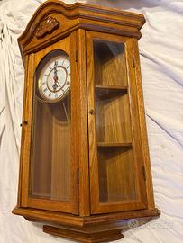 Orologio a pendolo Boston Clock Co una finitura in legno chiaro con venature e intagli decorativi L'orologio è un modello "Quartz Chime Wall Cabinet Clock"
