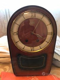 Favoloso orologio a pendolo da parete con cassa tutta lavorata in legno anni 50 in poi marca tedesca Walt perfettamente funzionante