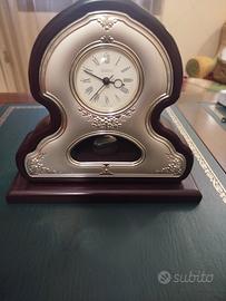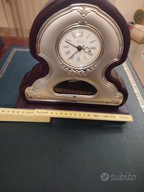 Orologio a pendolo argento e legno, molto elegante, da revisionare.Pendolo da tavolo in legno e argento.