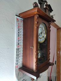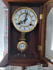 Un antico orologio da parete tedesco "Kienzle" RA in noce, ca. 1890, alto 32 pollici. Finitura originale molto pulita. Vetro originale. Il movimento con suoneria a 8 giorni e gong è completo. Ha il suo pendolo originale con placca RA in porcellana senza linee sottili. Tutto perfettamente funzionante