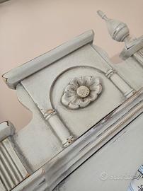 Orologio a pendolo, funzionante, rivisitato un stile shabby, con un delicato azzurro polvere Chieri e patinato. Fa un rintocco ogni ora, possibilità di disattivarlo..