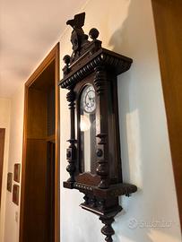 Vendo antico orologio a pendolo da parete, fine ’800 / inizi ’900, in legno scuro con splendide colonne tornite e vetro frontale.