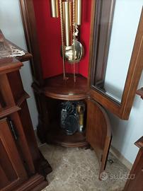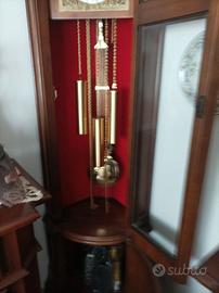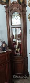 Orologio a pendolo da terra, mobile in noce ad angolo con due sportelli, meccanismo a carica manuale, tre melodie, fasi lunari, pari al nuovo. Misure 193 x 41 x 40. Trasporto a cura e carico dell'acquirente