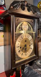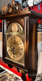 Per appassionati ed intenditori vendo orologio a pendolo con meccanismo a ricarica manuale di fine 1800. Carillon ancora funzionante che suona ogni 15 minuti. Integro in tutta la sua antichità dovra essere registrato nel meccanismo perché fermo da almeno 20 anni. Cassa in legno e ottone per finiture e meccanca di precisione.