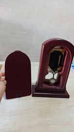 "Valenti & co ", . Si tratta di un orologio con cassa in legno ciliegio e una placca frontale in argento con decorazioni in stile classico. Il quadrante ha numeri romani.