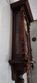 Questo oggetto è un orologio a pendolo da parete in stile classico, un elemento d'arredo che spesso fonde funzionalità e valore estetico come oggetto da collezione. Utilizza un meccanismo basato sull'oscillazione di un pendolo per regolare il tempo, spesso accompagnato da suonerie per le ore e mezz'ore.realizzato in legno per la cassa, con componenti in ottone o acciaio per il movimento interno. Ps. Preferisco ritiroa mano