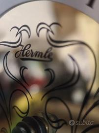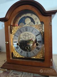 Splendido orologio da tavolo Hermle con un sorprendente meccanismo Westminster e movimento nella parte superiore del quadrante.
