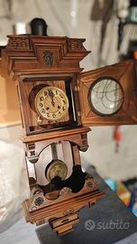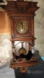 Orologio a pendolo meccanico con corpo in legno decorato. Dimensioni circa cm 80 X 35 X 20.